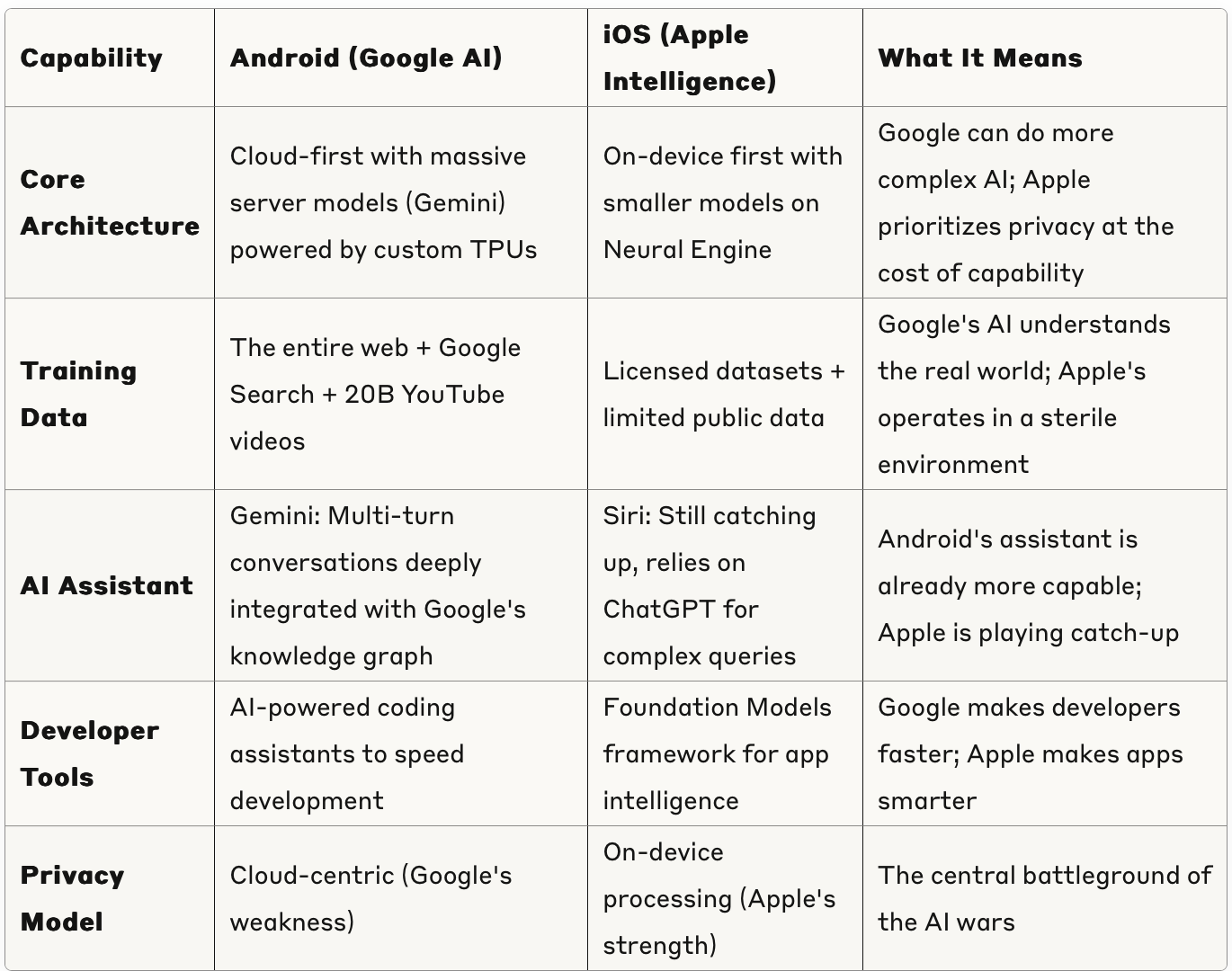 What do you think? Is Google's infrastructure advantage enough to overcome Apple's ecosystem lock-in? Or will privacy concerns keep users in Apple's walled garden?